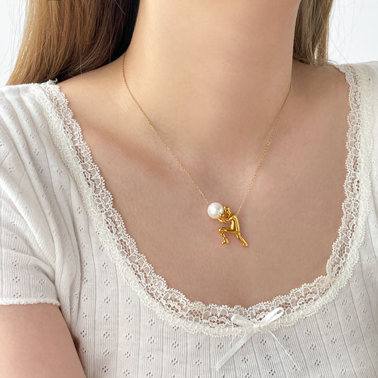 Halskette mit Kunstperlen und magnetischem Herzanhänger