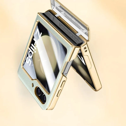 Scharnier Schutz - Bildschirmschutzfolie - Leder Hülle für Samsung Flip-Serie