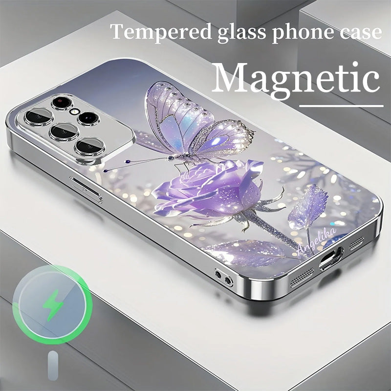 Kristall Schmetterling magnetische gehärtetes Glas Fall Abdeckung Hülle für Samsung S-Serie🎁20% Rabatt auf das Zweite✈️2 oder mehr: kostenloser Versand