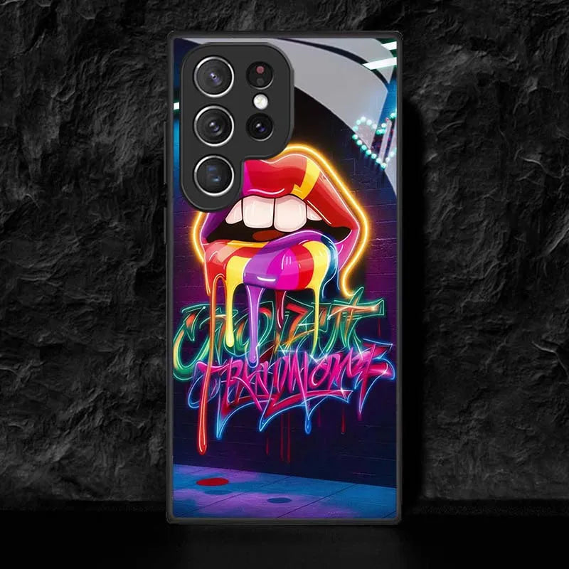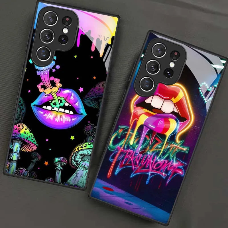 Farbig Lippen Glas Hülle für Samsung S-Serie