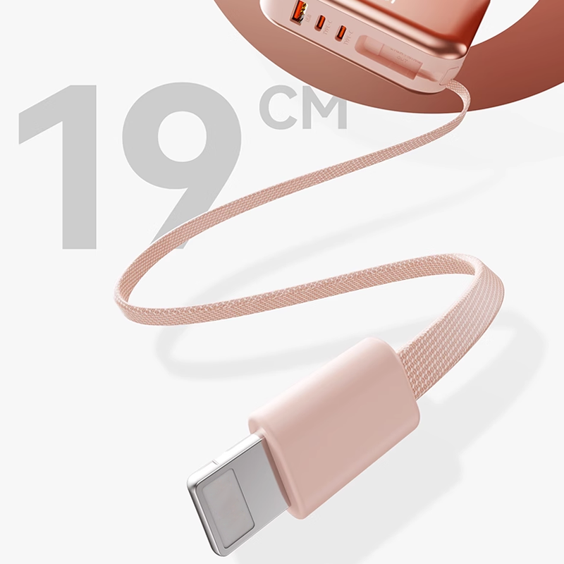 INTEGRIERTE DOPPELKABEL FÜR HÖCHSTEN KOMFORT: Mit integrierten Lightning- und Typ-C-Kabeln, sodass keine zusätzlichen Kabel erforderlich sind und Sie mehrere Geräte mühelos überall und jederzeit aufladen können.