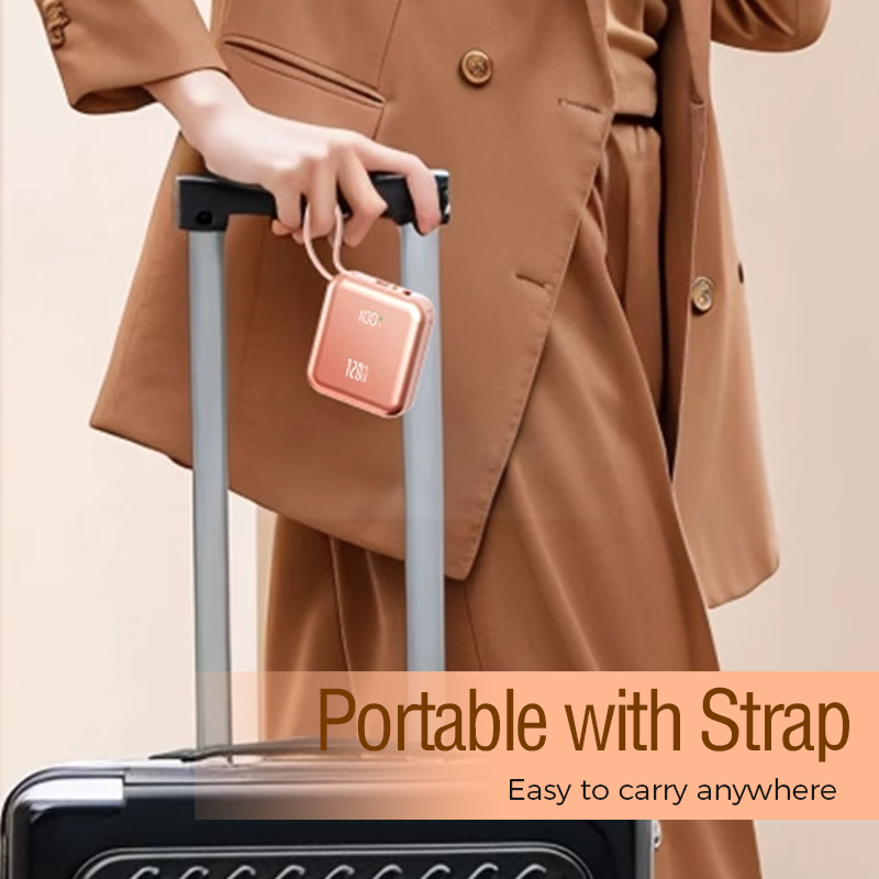 TRAGBARES DESIGN MIT TRAGEGURT: Kompakt, leicht und einfach zu transportieren – dank des mitgelieferten Trageriemens lässt sich diese Powerbank bequem überallhin mitnehmen und eignet sich somit perfekt für Reisen und den täglichen Gebrauch.