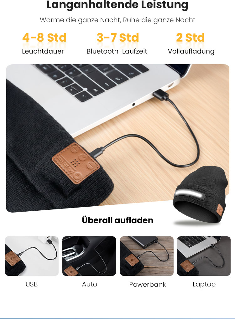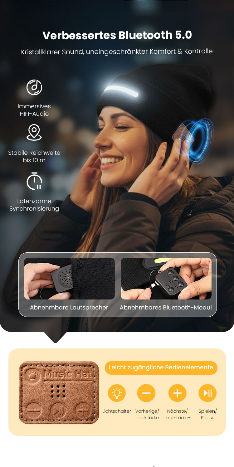 Wiederaufladbare Bluetooth-Mütze mit Licht