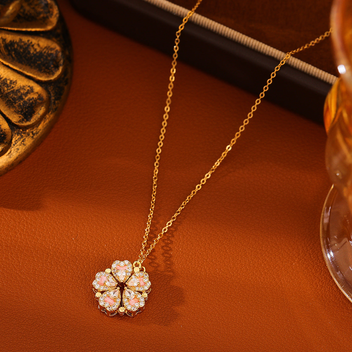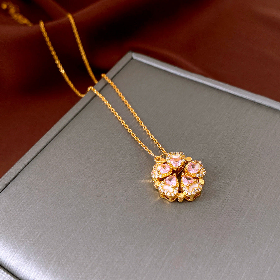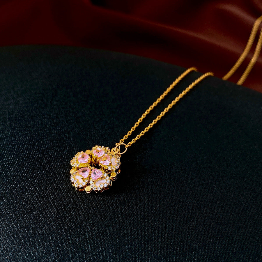💖 Rosa Kleeblatt Halskette mit 2-in-1 Design 💖