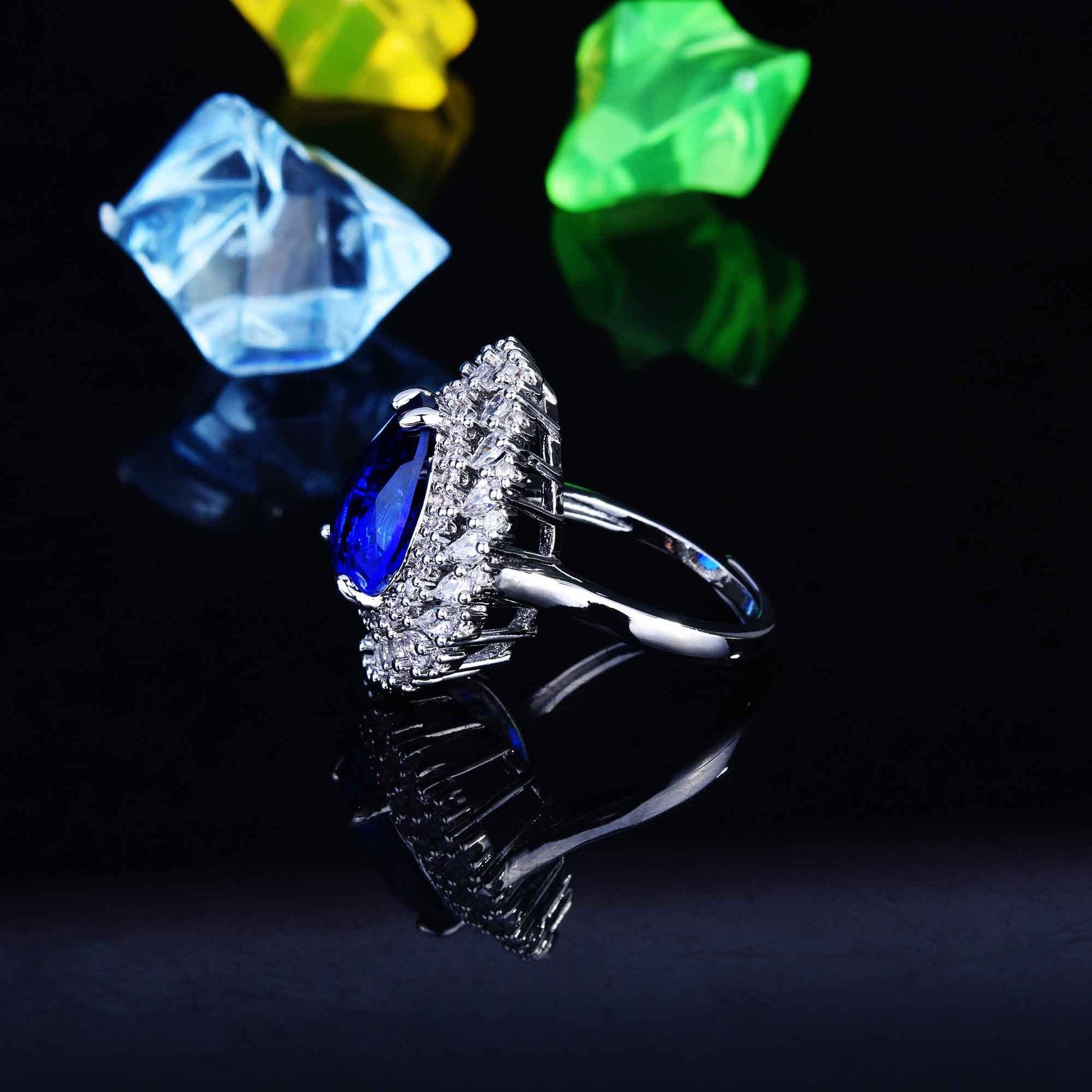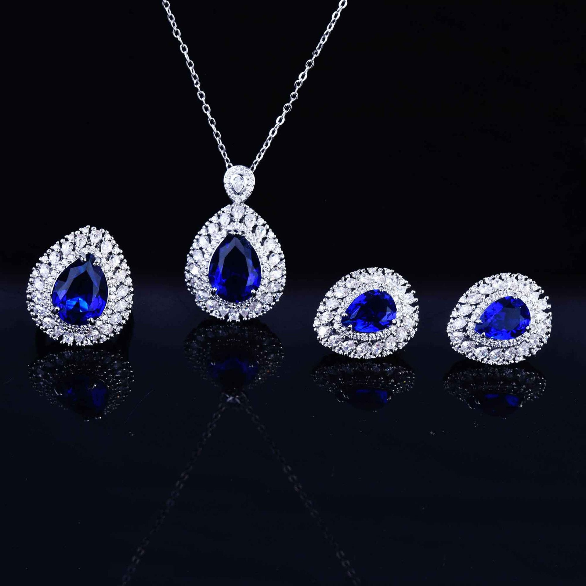 Exquisiter Luxus Saphir Anhänger, Ohrringe, Ring Schmuckset🔵