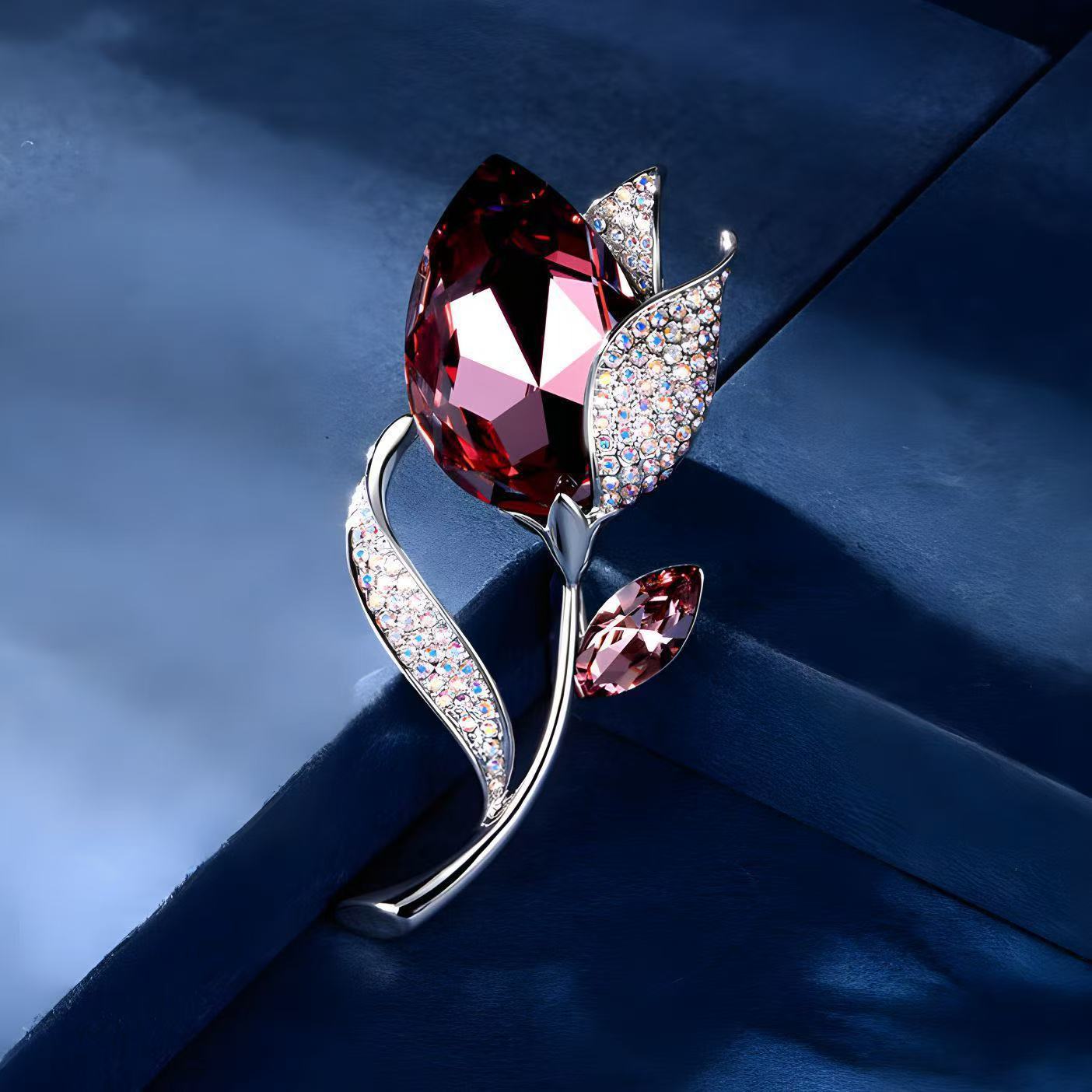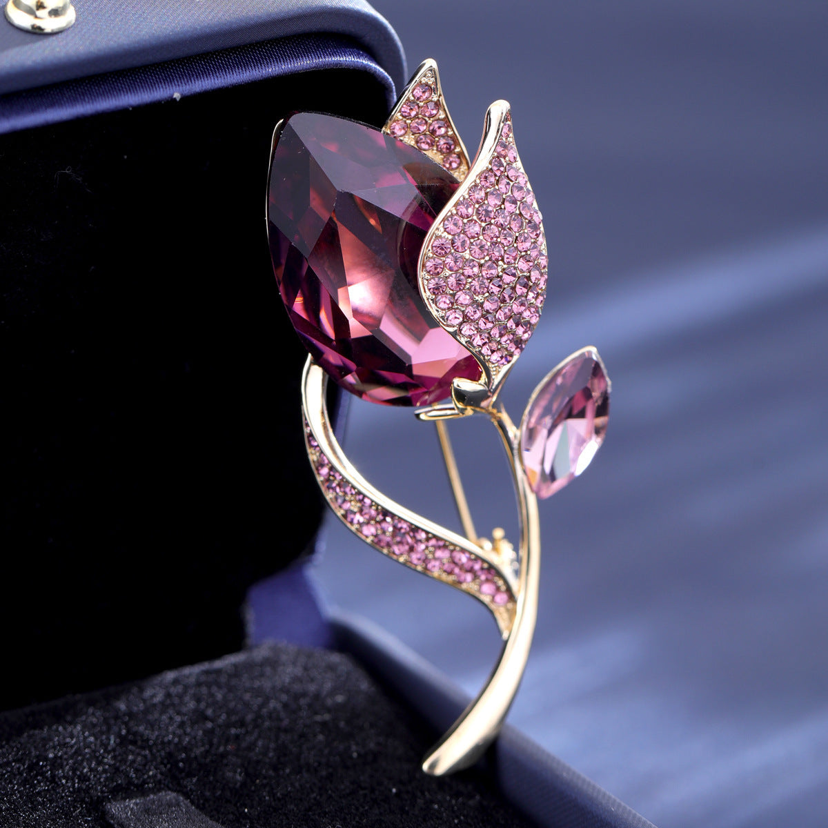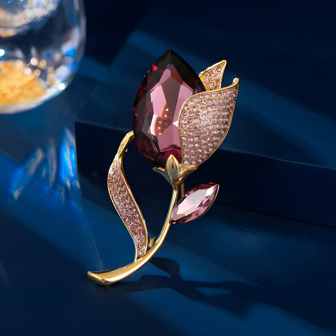 Bringen Sie den Zauber eines Frühlingsgartens zu Ihrer Kleidung! Diese atemberaubende Tulpen-Brosche, besetzt mit funkelnden Kristallen, vereint natürliche Anmut mit glamourösem Glanz. Ein Statement-Stück, das jede Alltagsroutine in einen besonderen Moment verwandelt.