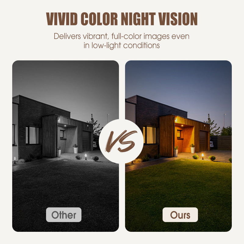 LEUCHTENDE FARBIGE NACHTSICHT – Liefert selbst bei schlechten Lichtverhältnissen lebendige, vollfarbige Bilder, im Gegensatz zur herkömmlichen Schwarz-Weiß-Nachtsicht. Die fortschrittliche Antireflexbeschichtung eliminiert Reflexionen von Straßenlaternen oder Fenstern und sorgt so rund um die Uhr für klare Aufnahmen.